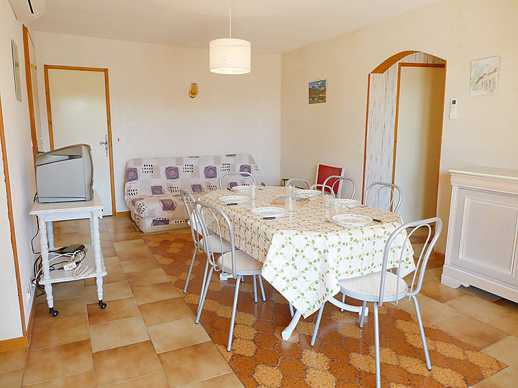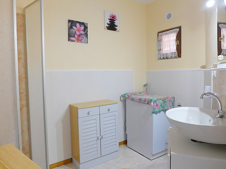 Apt 3 pièces 70 m2, au rez-de-chaussée. Aménagement agréable: séjour/salle à manger 21 m2 avec TV. Sortie sur la terrasse. 1 chambre avec 1 grand-lit (140 cm). 1 chambre avec 2 lits (90 cm). Cuisine (4 plaques de cuisson, four, lave-vaisselle, four micro-ondes, cafetière électrique). Douche, WC séparé. Terrasse 30 m2, situation est. Meubles de terrasse, barbecue. Vue éloignée sur la mer. A disposition: lave-linge. Place de parking. Veuillez noter: adapté(e) aux familles. Détecteur de fumée.