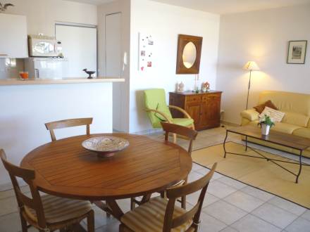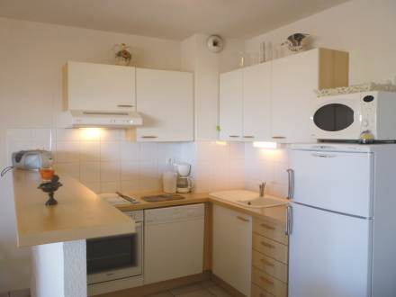 Pour avoir plus de détails et réserver cet hébergement, choisissez une date ci-dessus et cliquez sur voir l'offre ! Vous serez redirigé vers le site proposant la location.Apt 3 pièces 57 m2 au 1er étage. Aménagement agréable: séjour/salle à manger avec TV et radio. Sortie sur la terrasse. 1 chambre avec 1 grand-lit. 1 chambre avec 2 lits. Cuisine ouverte (4 plaques de cuisson, four, lave-vaisselle, four micro-ondes, congélateur). Salle de bains, WC séparé. Terrasse 11 m2, situation est. Meubles de terrasse. Vue latérale sur la mer. A disposition: lave-linge. Internet (Connexion WIFI, en sus). Place de parking. Veuillez noter: détecteur de fumée.
