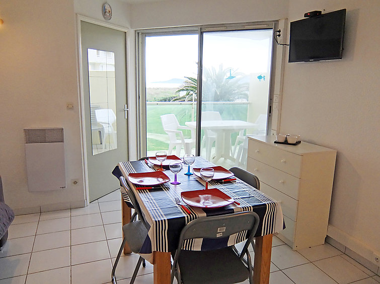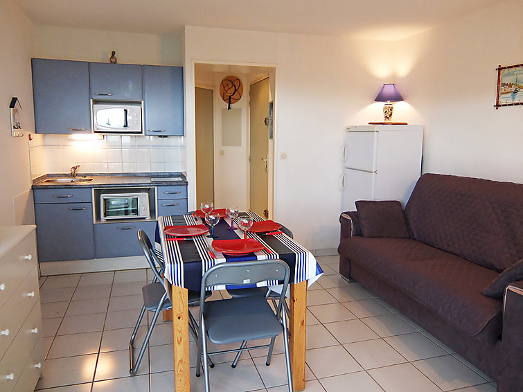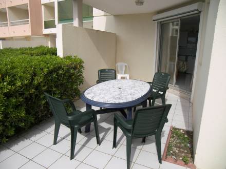 Pour avoir plus de détails et réserver cet hébergement, choisissez une date ci-dessus et cliquez sur voir l'offre ! Vous serez redirigé vers le site proposant la location.Résidence LES GOELETTES - Sécurisée avec ascenseur et parking collectif clos.Cet appartement situé au 1er étage se compose : D'une entrée, salle d'eau avec douche, W.C indépendant, séjour avec TV et canapé convertible en 140, coin cuisine équipée (réfrigérateur/congélateur, plaque vitrocéramique avec hotte, lave linge; lave vaisselle, four et micro ondes ..), chambre avec fenêtre et lit en 140.La terrasse couverte de 7 m2,disposée de façon à ne pas avoir de vis à vis, vous permettra d'admirer la splendide vue sur le parc arboré de la résidence, la piscine collective (25 x 12 m, profondeur 120-220 cm)ouverte du 15/06 au 15/09) ainsi que la mer. Proche d'une supérette (pratique pour les petites courses) cette location de vacances est idéale par sa situation géographique : Plage, piscine, commerces, activités sportives (Grand Stade des Capellans proposant tennis, padel, fitness, musculation) et récréatives (Aqualand).Posez vos valises et profitez de vos vacances !Prestations supplémentaires optionnelles : le linge de maison n'est pas fourni mais il est possible de le réserver à l'avance et de le récupérer à la remise des clés (kit lit double : 12.00 euros/ kit lit simple : 9.00 euros / kit serviette avec une grande et une petite serviette: 8.00 ?).Désinfection : Celle-ci ne dispense pas du ménage de sortie qui incombe au locataire ou qui en fera la demande de prestation supplémentaire à l'agence au minimum 72h avant son départ (tarifs communiqués sur demande).Location WIFI BOX : 39 ? / semaineCAUTION (empreinte CB le jour d'arrivée).Nous sommes agréées Chèques Vacances.