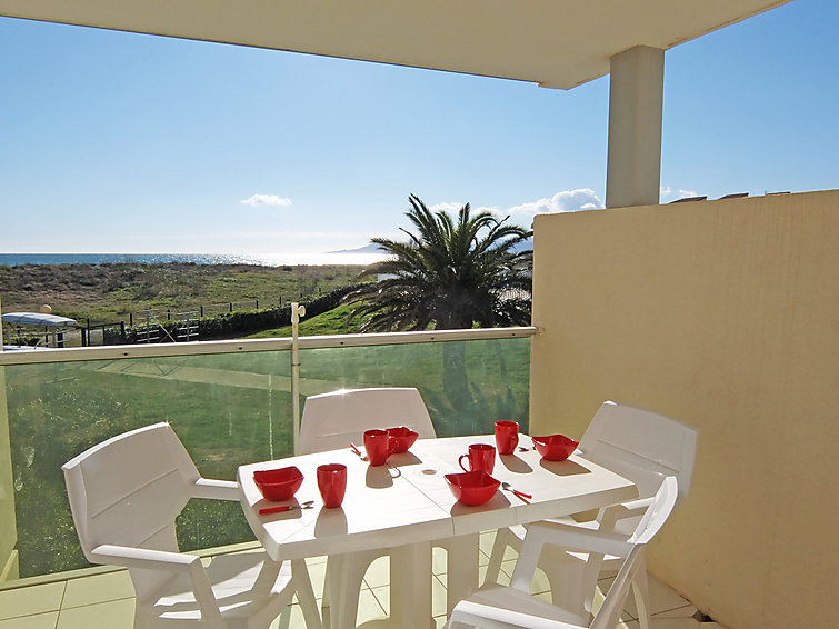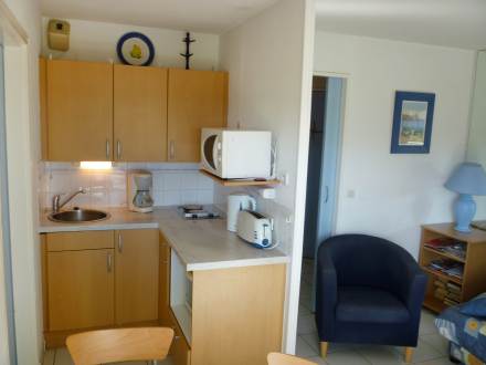 Pour avoir plus de détails et réserver cet hébergement, choisissez une date ci-dessus et cliquez sur voir l'offre ! Vous serez redirigé vers le site proposant la location.Apt 2 pièces 31 m2 au 1er étage. Séjour/salle à manger avec 1 divan-lit double et TV. Sortie sur la terrasse. 1 chambre avec 1 grand-lit. Coin cuisine (mini-four, 2 plaques vitrocéramique, four micro-ondes, congélateur). Douche, WC séparé. Terrasse 7 m2, couverte, situation sud-est. Meubles de terrasse. Belle vue sur la mer et la piscine.