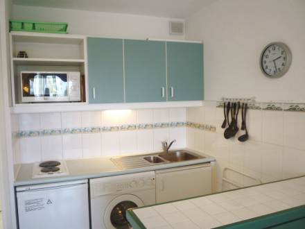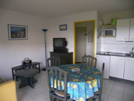 Pour avoir plus de détails et réserver cet hébergement, choisissez une date ci-dessus et cliquez sur voir l'offre ! Vous serez redirigé vers le site proposant la location.Apt 2 pièces 26 m2, au rez-de-chaussée: séjour/salle à manger avec 1 divan-lit double et TV (écran plat). 1 chambre avec 1 grand-lit. Coin cuisine (2 plaques de cuisson). Douche, WC séparé. Maximum 1 animal/ chien autorisé. Loggia et jardinet 15 m2, exposition sud-ouest.