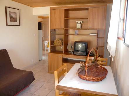 "La Pinède", apt 2 pièces 40 m2, rénové en 2010, aménagement agréable: séjour/salle à manger avec 1 divan-lit double (140 cm, longueur 190 cm), TV. Sortie sur la terrasse. 1 chambre avec 1 grand-lit (140 cm, longueur 190 cm). Sortie sur la terrasse. Cuisine (2 plaques de cuisson, four, four micro-ondes, congélateur). Douche/WC. Chauffage électrique. Grande terrasse 25 m2, situation sud et situation ouest. Meubles de terrasse, barbecue. Belle vue éloignée sur la mer. A disposition: lave-linge. Internet (Connexion WIFI). Place de parking (sur le terrain).
