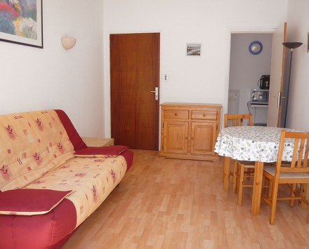 Apt 2 pièces 37 m2, rez-de-chaussée surélevé: séjour/salle à manger avec 1 divan-lit double (130 cm, longueur 190 cm), TV. Sortie sur la terrasse. 1 chambre avec 1 grand-lit (140 cm, longueur 190 cm). Cuisine (4 plaques de cuisson, four, four micro-ondes). Douche/WC. Terrasse 10 m2, situation sud-ouest. Meubles de terrasse. Veuillez noter: réfrigérateur sans compartiment congélateur. Maximum 1 animal/ chien autorisé. Cour fermée gravillonnée de 30 m2 (8 marches à descendre).