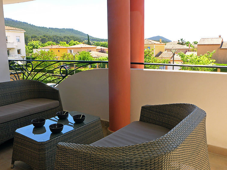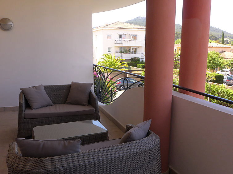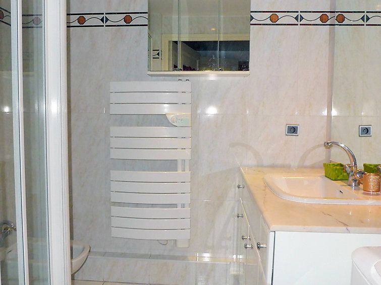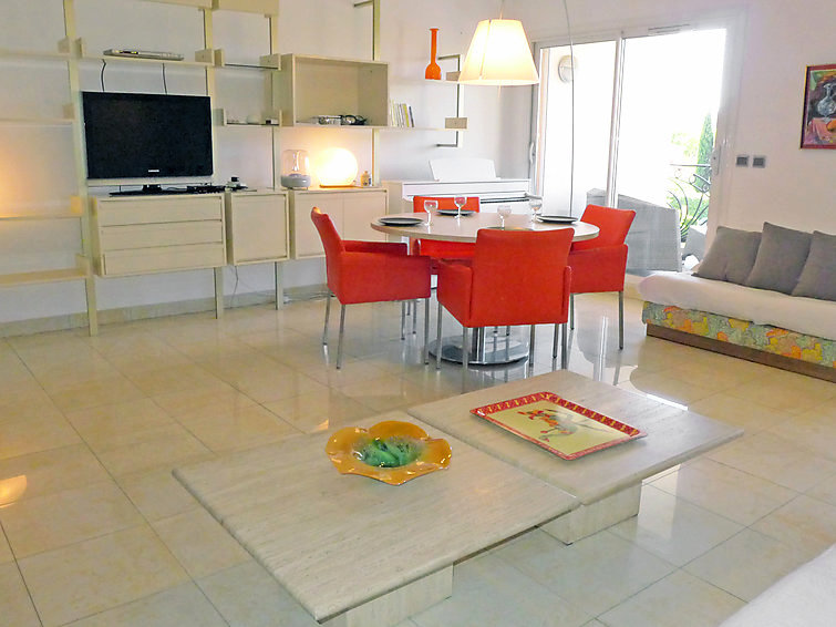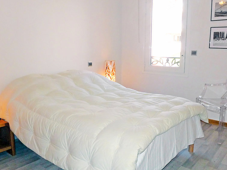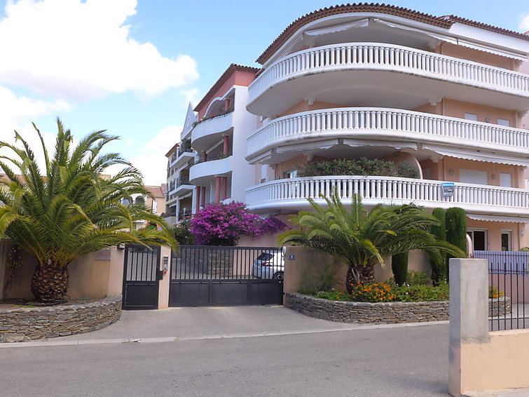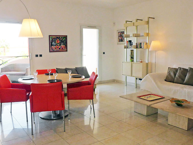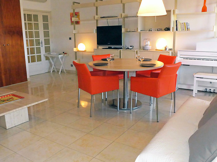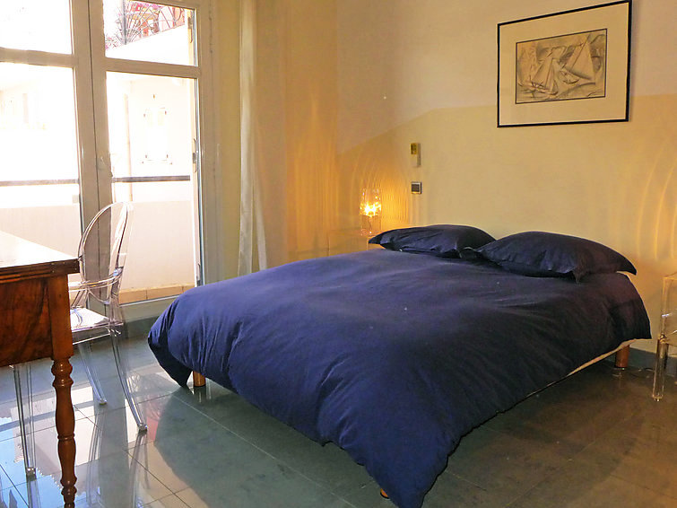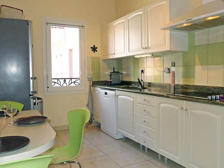 "Le Palais Vénitien", apt 3 pièces 81 m2 au 1er étage. Spacieux et clair, aménagement confortable: séjour/salle à manger avec TV (écran plat). Sortie sur la terrasse. 2 chambres, chaque chambre avec: 1 grand-lit (140 cm, longueur 190 cm). Cuisine (four, lave-vaisselle, 4 plaques à induction, four micro-ondes, congélateur). Douche, WC séparé. Air-conditionné. Terrasse 12 m2. Meubles de terrasse. A disposition: lave-linge. Place de parking No 15. Veuillez noter: TV seulement FR.