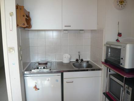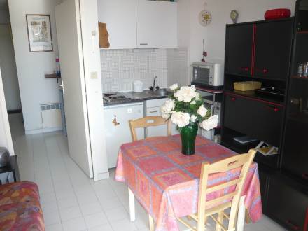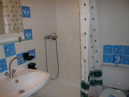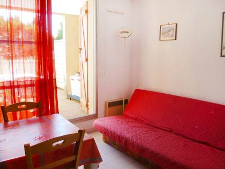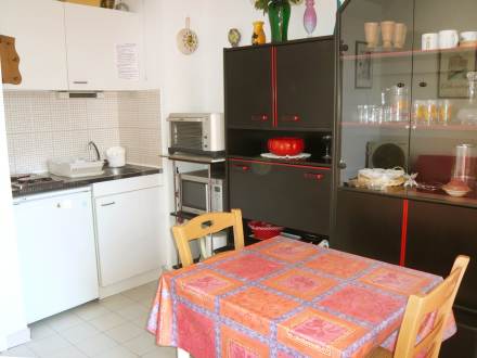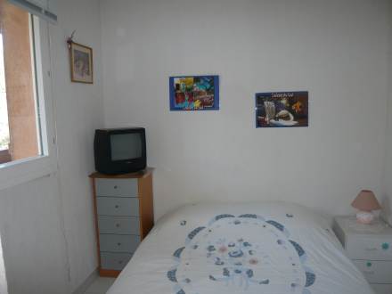Apt 2 pièces 40 m2 au 1er étage: séjour/salle à manger avec baie vitrée avec 1 divan-lit double (130 cm, longueur 190 cm), table pour les repas, TV, vidéo et DVD. Sortie sur la terrasse. 1 chambre avec 1 grand-lit (140 cm, longueur 190 cm). Coin cuisine (2 plaques de cuisson, mini-four, four micro-ondes). Douche/WC. Chauffage électrique. Terrasse 14 m2 partiellement couverte, situation sud. Meubles de terrasse, barbecue électrique (portable). Place de parking No 22. Veuillez noter: réfrigérateur sans compartiment congélateur. Maximum 1 animal/ chien autorisé.