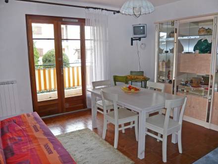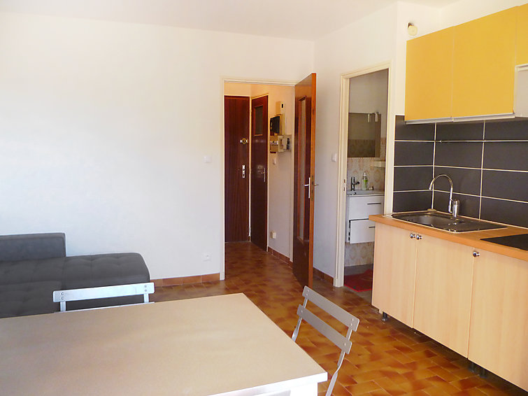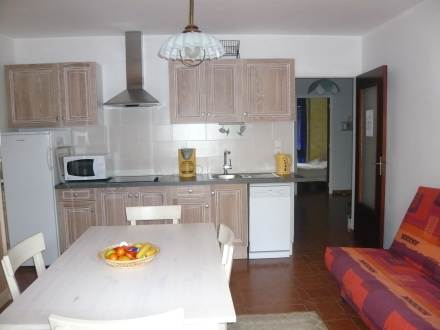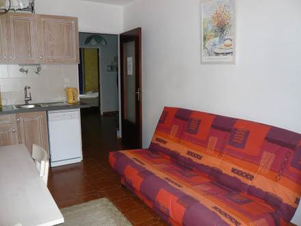Pour avoir plus de détails et réserver cet hébergement, choisissez une date ci-dessus et cliquez sur voir l'offre ! Vous serez redirigé vers le site proposant la location.Apt 2 pièces 33 m2, rez-de-chaussée surélevé. Clair, complètement rénové en 2014, aménagement confortable et agréable: séjour/salle à manger avec 1 divan-lit (140 cm, longueur 190 cm), table pour les repas et TV (écran plat), air-conditionné. Sortie sur la terrasse. 1 chambre avec 1 lit (70 cm, longueur 180 cm), 1 x 2 lits superposés (80 cm, longueur 190 cm). Coin cuisine (2 plaques vitrocéramique, four micro-ondes, congélateur, cafetière électrique). Salle de bains, WC séparé. Terrasse 6 m2, couverte, situation sud. Meubles de terrasse. A disposition: lave-linge. Place de parking. Veuillez noter: adapté(e) aux familles. TV seulement FR.