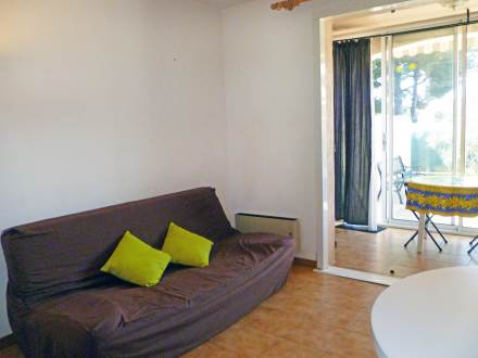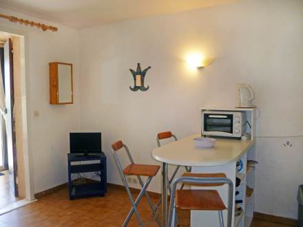 Apt 2 pièces 38 m2, au rez-de-chaussée, aménagement fonctionnel: séjour/salle à manger avec 1 divan-lit (140 cm, longueur 190 cm), table pour les repas et TV. Sortie sur le jardin, sur la terrasse. 1 chambre avec 1 lit double (1 x 140 cm, longueur 190 cm). Coin cuisine (2 plaques de cuisson, mini-four, four, four micro-ondes, cafetière électrique). Sortie sur le balcon. Douche, WC séparé. Chauffage électrique. Petite terrasse 10 m2, couverte. Meubles de terrasse, barbecue, chaises longues (1). A disposition: lave-linge. Place de parking près de la maison. Veuillez noter: logement pour non fumeurs. 1 animal domestique de petite taille toléré maximum 1 animal/ chien de petite taille autorisé. TV seulement FR.