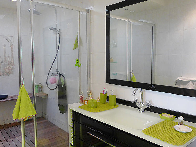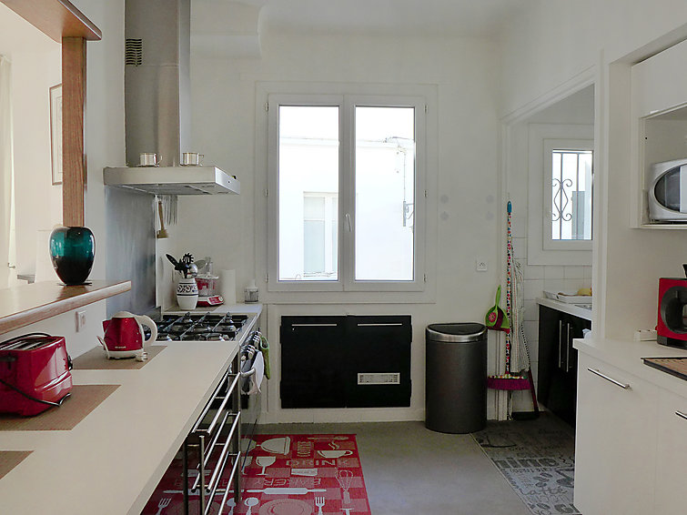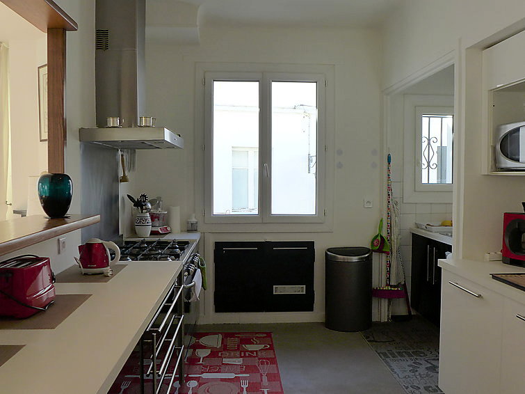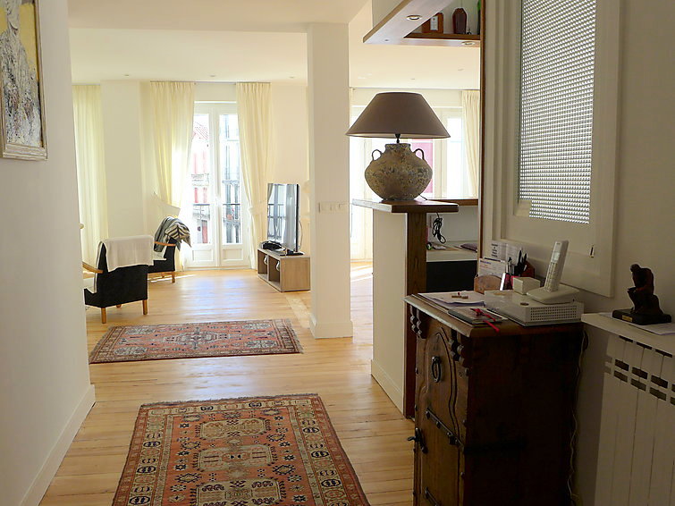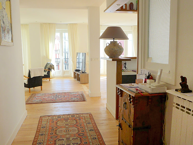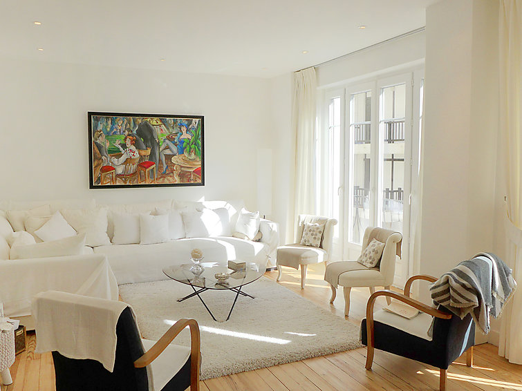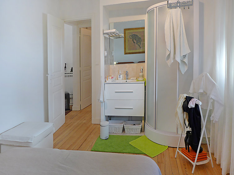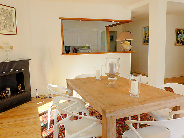 Apt 3 pièces 113 m2 au 1er étage. Aménagement agréable et de bon goût: séjour/salle à manger avec TV (écran plat). 1 chambre avec 1 grand-lit (1 x 160 cm), lavabo et douche. 1 chambre avec 2 lits (90 cm), TV (écran plat). (5 plaques de cuisson, four, lave-vaisselle, congélateur). Douche, WC séparé, double vasque. Chauffage au gaz. A disposition: lave-linge, fer à repasser, sèche-cheveux. Internet (Connexion WIFI). Place de parking. Veuillez noter que l'accès à l'appartement se fait par un escalier.