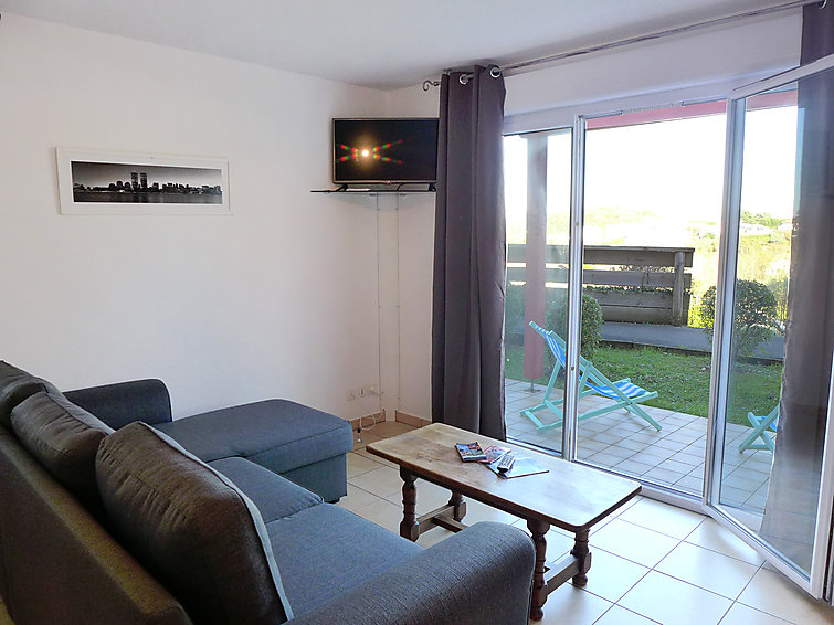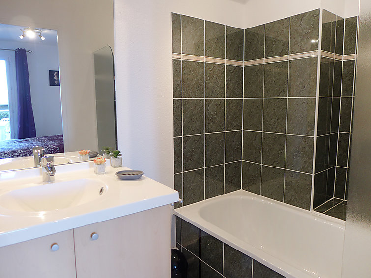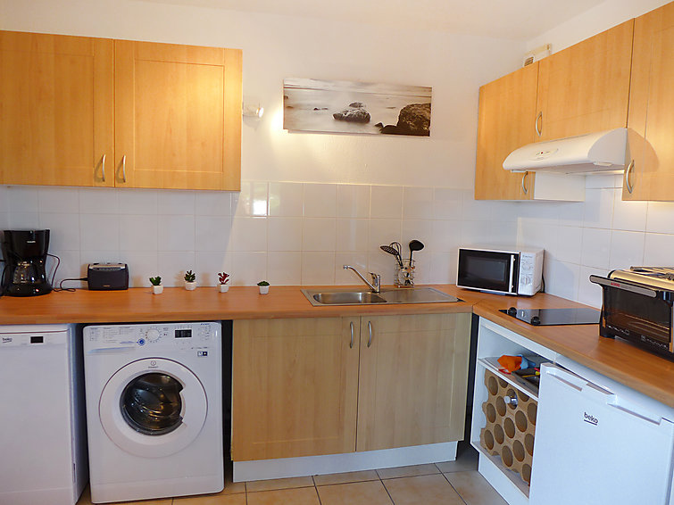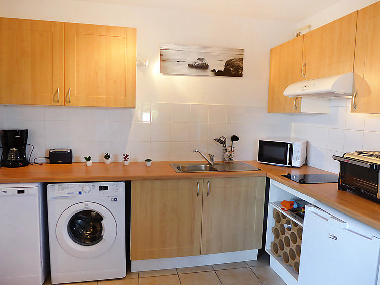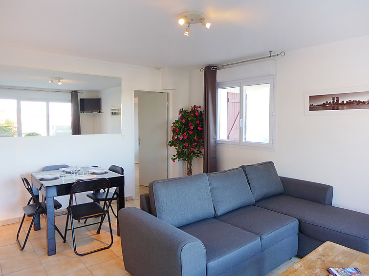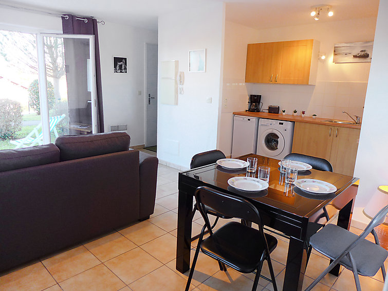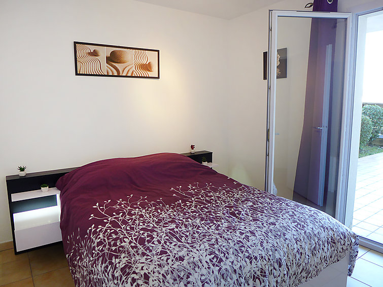 Apt 2 pièces au rez-de-chaussée. Aménagement confortable et agréable: séjour/salle à manger avec 1 divan-lit double et TV (écran plat). Sortie sur la terrasse. 1 chambre avec 1 grand-lit (1 x 140 cm, longueur 200 cm). Sortie sur la terrasse. Cuisine ouverte (four, lave-vaisselle, 2 plaques vitrocéramique, four micro-ondes, cafetière électrique). Salle de bains, WC séparé. Chauffage électrique. Terrasse 28 m2. Meubles de terrasse, chaises longues. A disposition: lave-linge.