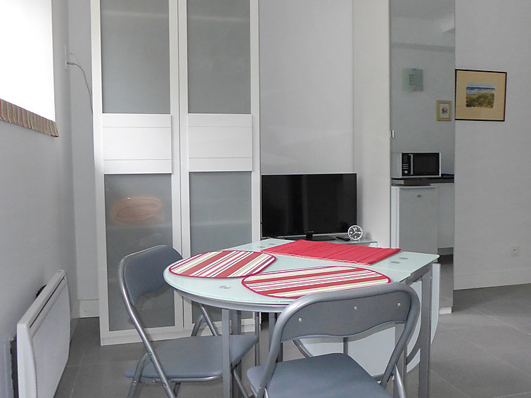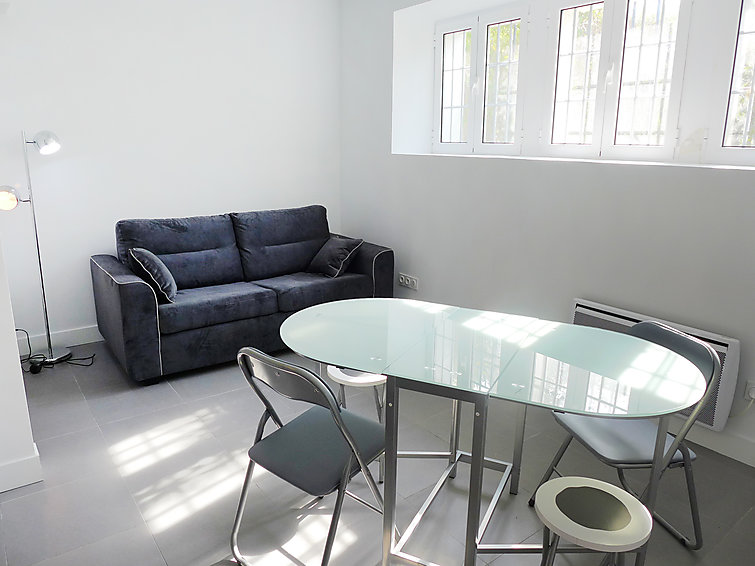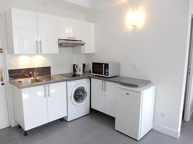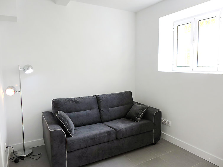 Studio 20 m2, à l'entresol, clair, aménagement moderne et de bon goût: séjour/chambre à coucher avec 1 divan-lit double, table pour les repas et TV (écran plat). Coin cuisine (2 plaques vitrocéramique, combiné micro-ondes). Douche/WC. Chauffage électrique. Vue sur le jardin. A disposition: lave-linge, fer à repasser, sèche-cheveux. Place de parking près de la maison.