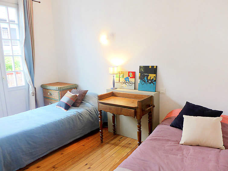 Apt 3 pièces 80 m2. Bien convenant à 4 adultes + 2 enfants. Aménagement confortable et agréable: séjour/salle à manger avec 1 divan-lit double (1 x 140 cm), TV (écran plat), DVD. 1 chambre avec 1 grand-lit (1 x 160 cm). 1 chambre avec 2 lits (90 cm). Cuisine ouverte (4 plaques de cuisson, four, four micro-ondes, congélateur). Salle de bains, douche, WC séparé, double vasque. Chauffage au gaz. A disposition: lave-linge, sèche-linge, fer à repasser, sèche-cheveux. Internet (Connexion WIFI, gratuit). Place de parking (couvert). Veuillez noter: logement côté rue. 1 animal/ chien de petite taille autorisé.