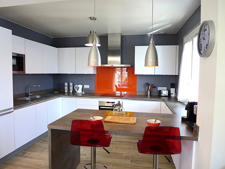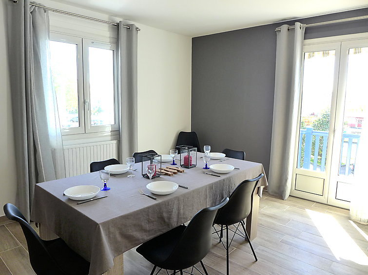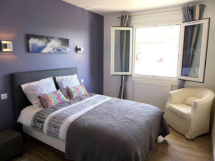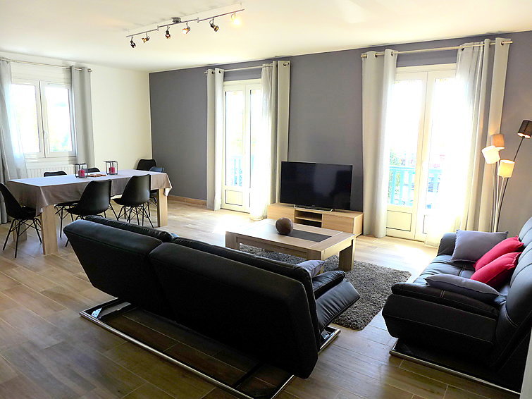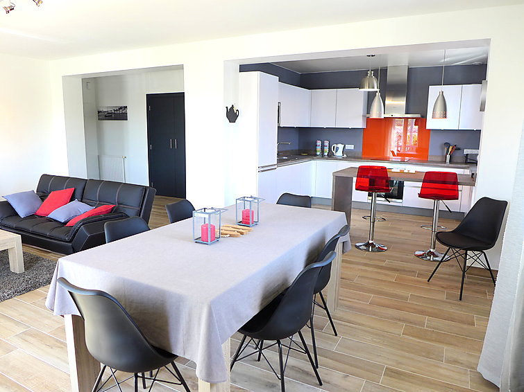 Apt 4 pièces 100 m2 au 1er étage. Clair, aménagement agréable et moderne: à l'étage supérieur: salle à manger avec TV (écran plat). 1 chambre avec 1 grand-lit (1 x 140 cm). 1 chambre avec 1 grand-lit (1 x 160 cm), douche et TV (écran plat). 1 chambre avec 1 grand-lit (1 x 160 cm), TV (écran plat). Cuisine ouverte (four, lave-vaisselle, 3 plaques à induction, cafetière électrique). Douche, WC séparé. Chauffage au gaz. A disposition: lave-linge, sèche-linge, fer à repasser, sèche-cheveux. Internet (Connexion WIFI, gratuit). Place de parking. Veuillez noter: logement pour non fumeurs.