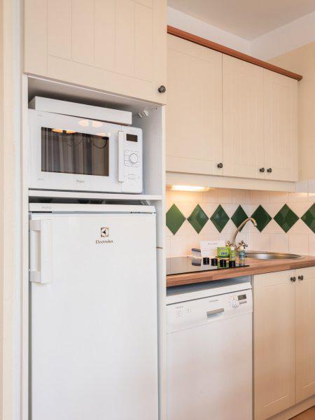 L'appartement comprend un coin cuisine entièrement équipé de 4 plaques vitrocéramiques, d'un réfrigérateur, d'un four traditionnel ou d'un four à micro-ondes,d'un lave-vaisselle et d'une cafetière électrique.