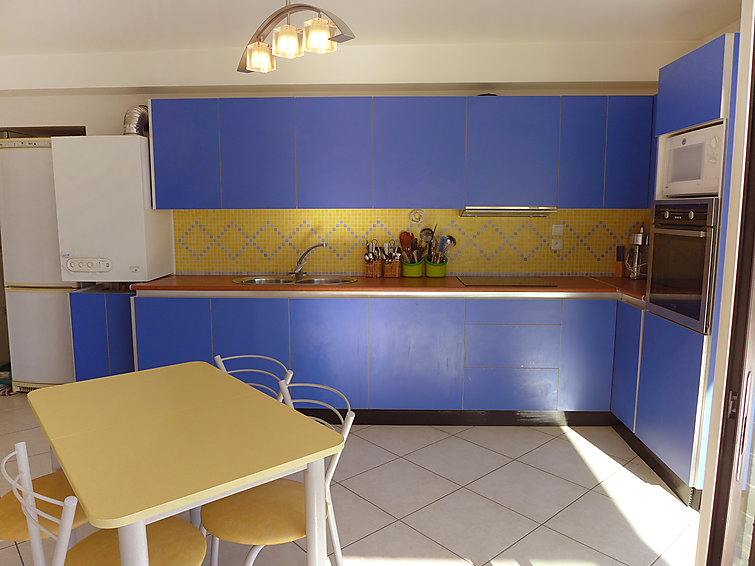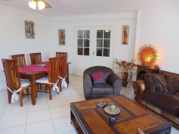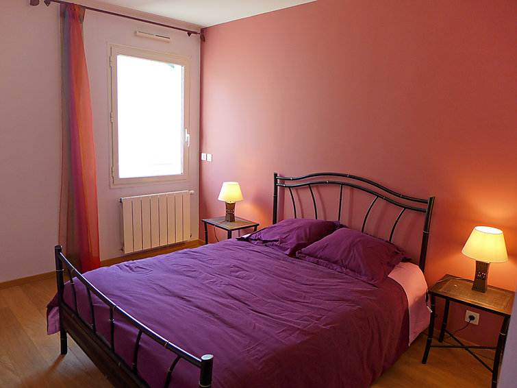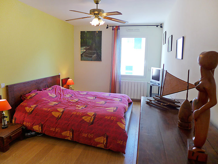 Apt 3 pièces 80 m2 au 2ème étage, spacieux, aménagement fonctionnel et agréable: séjour/salle à manger avec table pour les repas, TV, écran plat et DVD. Sortie sur la terrasse, orientée sud et orientée ouest. 1 chambre avec 1 lit double (1 x 160 cm), salle de bains, douche/WC, double vasque et TV (écran plat). 1 chambre avec 1 grand-lit (1 x 140 cm), douche/WC. Cuisine (lave-vaisselle, 4 plaques vitrocéramique, four micro-ondes, congélateur, cafetière électrique) avec table pour les repas. WC séparé. Chauffage au gaz. Meubles de terrasse, barbecue électrique. A disposition: lave-linge. Place de parking.