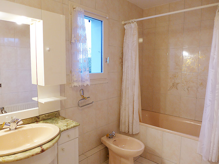 Apt 3 pièces 70 m2 au 1er étage. Aménagement fonctionnel et confortable: séjour/salle à manger avec TV (écran plat). Sortie sur la terrasse. 1 chambre avec 1 grand-lit (1 x 140 cm). Sortie sur la terrasse. 1 chambre avec 2 lits (90 cm). Cuisine (3 plaques de cuisson, four, lave-vaisselle, four micro-ondes, congélateur). Sortie sur la terrasse. Salle de bains, WC séparé. Chauffage au gaz. Grande terrasse 20 m2, situation ouest. Meubles de terrasse. A disposition: lave-linge, fer à repasser, sèche-cheveux.