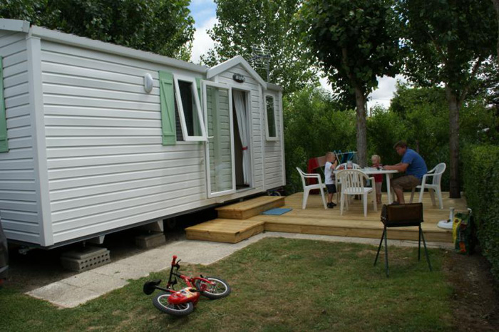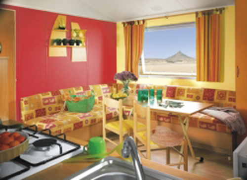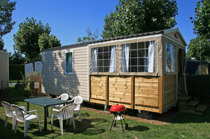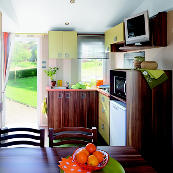 Le Mobil Home comprend une cuisine toute équipée avec vaisselle pour 4 personnes, micro-ondes, réfrigérateur et cafetière électrique. Il dispose aussi d'une terrasse avec salon de jardin et barbecue. Couettes et oreillers fournis.