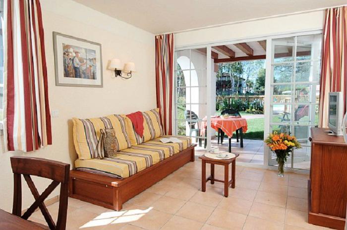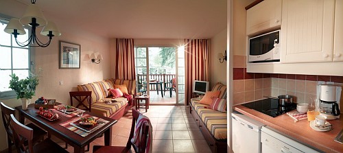 Appartement équipé d'une kitchenette avec 4 plaques vitrocéramiques, réfrigérateur, four micro ondes, lave vaisselle et cafetière électrique. Téléphone (payant), télévision, un aspirateur par appartement. Terrasse ou balcon avec mobilier de jardin.