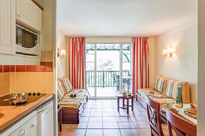 Pour avoir plus de détails et réserver cet hébergement, choisissez une date ci-dessus et cliquez sur voir l'offre ! Vous serez redirigé vers le site proposant la location.La résidence Le Parc d'Arradoy, de style néo-basque, s'inscrit dans le parc arboré d'une propriété du 19e siècle. A votre disposition : piscine chauffée d'avril à fin septembre, pataugeoire, aire de jeux, terrain de badminton et tables de ping-pong. Labelisée Clef Verte, cette résidence est respectueuse de l'environnement sous différents critères, gestion de l'énergie, de l'eau, des déchets, sensibilisation des clients et des employés, achats responsables... Venir dans cette résidence c'est faire un éco-geste pour l'environnement ! LES APPARTEMENTS Tous les appartements sont entièrement équipés : baignoire, cafetière, bouilloire, plaques de cuisson vitrocéramiques, lave-vaisselle, four à micro-ondes, balcon ou terrasse, coffre-fort individuel (payant) et TV avec chaînes natrionales et internationales. Studio 4/5 personnes (environ 32 m²) : 1 séjour avec 2 lits-banquettes dont 1 avec 1 lit gigogne (recommandé pour les enfants), 1 coin cabine avec 2 lits superposés, 1 coin cuisine, 1 salle de bain et 1 WC. 2 pièces 4 personnes (environ 27 m²) : 1 séjour avec 1 canapé-lit double, 1 chambre avec 2 lits simples, 1 coin cuisine, 1 salle de bain et 1 WC. 2 pièces 4/5 personnes (environ 32 m²) : 1 séjour avec 2 lits-banquettes dont 1 avec 1 lit gigogne (recommandé pour les enfants), 1 chambre avec 1 lit double, 1 coin cuisine, 1 salle de bain et 1 WC. 2 pièces 6 personnes (environ 37 m²) : 1 séjour avec 1 lit-banquette avec 1 lit gigogne (recommandé pour les enfants),1 coin cabine avec 2 lits superposés, 1 chambre avec 1 lit double, 1 coin cuisine, 1 salle de bain et 1 WC. A noter : le couchage en hauteur ne convient pas à des enfants de moins de 6 ans. Décret n° 95 949 du 25/08/1995 SERVICES INCLUS - Piscine extérieure chauffée (avril à fin septembre) - Linge de lit - Linge de toilette - Kit d'entretien - Ménage de fin de séjour (excepté la cuisine et la vaisselle) - Service de prêt (Fers et planches à repasser, sèche-cheveux, protège-prises, barrière de lit, livres de poche, BD, jeux de société, jeux de balles, croquet, beach ball, diabolo junior,cordes à sauter, jeux de quilles, fontaine à chocolat, machine à popcorn et à barbe à papa). - Parking - WiFi dans les appartements SERVICES PAYANTS (tarifs sur demande) - Emplacement Préférentiel - Kit bébé - Ménage en cours de séjour - Animaux domestiques admis - Laverie - Lits faits à l'arrivée