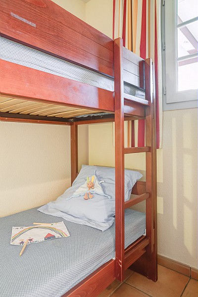 Appartement de 2 à 3 pièces d'environ 37m² pouvant accueillir de cinq à six personnes. Il comprend un séjour avec une banquette-lit et un lit gigogne, une chambre avec un lit double, une cabine avec deux lits superposés, une kitchenette équipée, une salle de bains et des toilettes séparés. A savoir : Le couchage en hauteur ne convient pas aux enfants de moins de 6 ans.