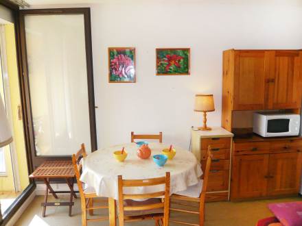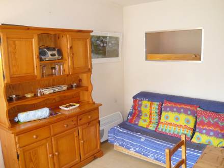 Pour avoir plus de détails et réserver cet hébergement, choisissez une date ci-dessus et cliquez sur voir l'offre ! Vous serez redirigé vers le site proposant la location.Apt 2 pièces 32 m2 au 1er étage: séjour/salle à manger avec TV et radio. Sortie sur la loggia. Alcôve avec 1 x 2 lits superposés. 1 chambre avec 1 grand-lit. Coin cuisine (2 plaques de cuisson, four micro-ondes). Douche/WC. Chauffage électrique. Meubles de terrasse. Maximum 1 animal/ chien de petite taille autorisé. Loggia, 4 m2, exposition sud-ouest.