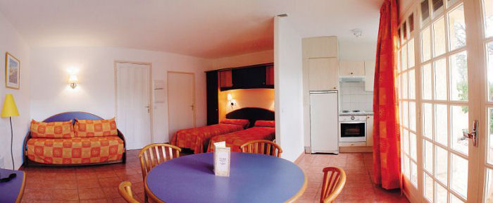 Studio de 31m² pour 4 personnes, situé sur l'un des plus beaux emplacements du Club en rez-de-chaussée dans la partie "Roches Rouges", composé d'une kitchenette équipée, d'un séjour avec une banquette-lit gigogne (2 couchages), d'un coin couchage avec 2 lits simples, d'une salle de bains avec douche ou baignoire et WC et d'une terrasse.L'ajout d'un lit bébé est possible.Le logement peut accueillir 4 personnes + un bébé de moins de 2 ans. La 5ème personne ne peut pas être un adulte ni un enfant mais uniquement en bébé de moins de 2 ans.