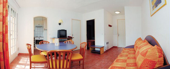 Appartement 3 Pièces de 45m² pour 6 personnes, situé sur l'un des plus beaux emplacements du Club dans la partie "Les Pins", composé d'une kitchenette équipée, d'un séjour avec une banquette-lit gigogne (2 couchages), de deux chambres avec 2 lits simples à l'italienne convertibles en 1 lit double chacune, d'une salle de bains avec douche ou baignoire et WC et d'une terrasse.L'ajout d'un lit bébé est possible.Le logement peut accueillir 6 personnes + un bébé de moins de 2 ans. La 7ème personne ne peut pas être un adulte ni un enfant mais uniquement en bébé de moins de 2 ans.