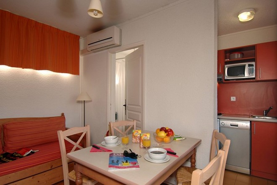 Appartement avec coin cuisine équipé d'un réfrigérateur, de plaque électrique ou vitrocéramiques, d'un micro-ondes et d'un lave-vaisselle. Linge de lit fourni.A noter : Prestations incluses en Courts séjours : le linge de lit et le linge de toilette, les lits faits à l?arrivée, la télévision et le ménage quotidien.
