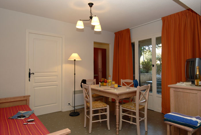 Appartement de 2 pièces pour 4 à 5 personnes de 28 à 31m² composé d'un grand séjour avec un lit gigogne pour deux personnes, d'une chambre avec un lit double et un couchage (fauteuil dépliable ou lit superposé sur le lit double), d'une kitchenette équipée et d'une salle de douche avec toilettes.5 appartements 2 pièces 4/5 personnes sont équipés pour les personnes à mobilité réduite.