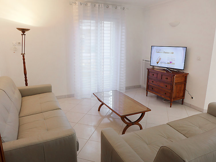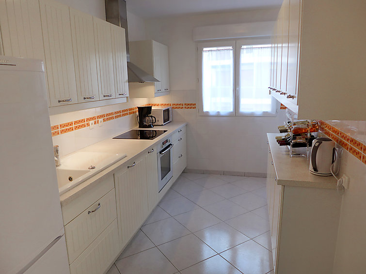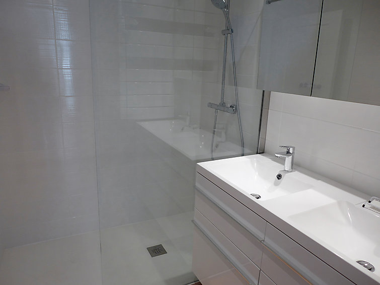 Apt 3 pièces 100 m2 au 3ème étage. Spacieux, aménagement confortable: séjour/salle à manger 45 m2 avec 1 divan-lit (160 cm, longueur 200 cm), écran plat. Sortie sur la terrasse. 1 chambre avec 1 lit (160 cm, longueur 200 cm) avec douche et double vasque. 1 chambre avec 1 lit (160 cm, longueur 200 cm) avec WC séparés. Cuisine (four, lave-vaisselle, 4 plaques à induction, four micro-ondes, congélateur, cafetière électrique). Douche, double vasque. Chauffage électrique. Terrasse 15 m2. Meubles de terrasse. A disposition: fer à repasser. Garage No 11, hauteur 205 cm, largeur 220 cm. Veuillez noter: logement pour non fumeurs. Détecteur de fumée.