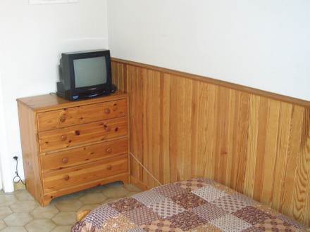 Studio 20 m2 au 4ème étage: séjour/salle à manger avec 1 divan-lit double (1 x 140 cm), Télévision numérique. Coin cuisine (four). Salle de bains, WC séparé. Chauffage électrique. Terrasse 9 m2, situation sud-ouest. Meubles de terrasse. Garage No 39. Maximum 1 animal/ chien autorisé. Veuillez noter: garage pour petites voitures seulement.