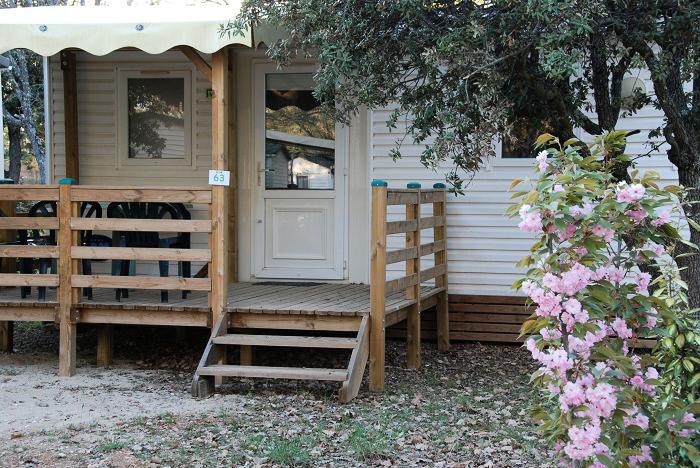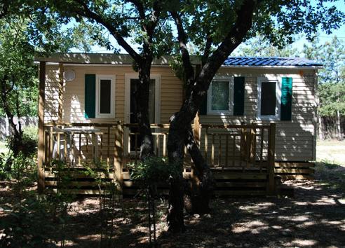 Cottage de 3 pièces de 21m² pouvant accueillir 4 personnes.Il est composé d'un séjour avec coin repas, d'une cuisine équipée, d'une chambre avec 1 lit double (190cm), d'une chambre avec 2 lits simples (70cm) et d'une salle de bain avec douche, lavabo et WC indépendant.Terrasse couverte de 11m².