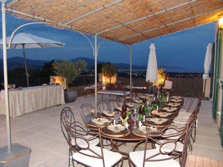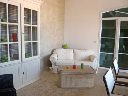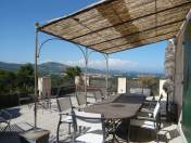 "Les Terrasses de Font Mourier", apt 3 pièces 100 m2, au rez-de-chaussée, spacieux et clair, aménagement fonctionnel: 1 chambre avec 1 lit (160 cm). Sortie sur la terrasse. 1 chambre avec 2 lits (90 cm). Sortie sur la terrasse. Séjour/salle à manger. Sortie sur la terrasse. Grande cuisine ouverte (4 plaques de cuisson, four, lave-vaisselle). Bain/WC, douche, WC séparé. À l'étage supérieur: galerie avec 2 lits (90 cm). Grande terrasse 65 m2. Meubles de terrasse. Très belle vue sur la mer et la piscine. A disposition: lave-linge, sèche-linge. Place de parking No 11 et 12.
