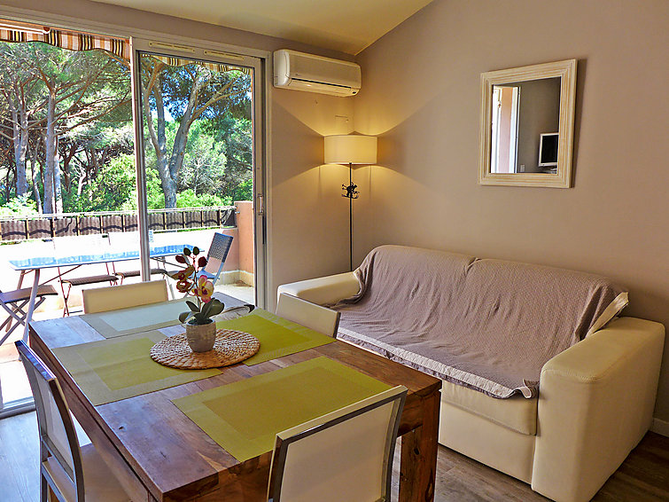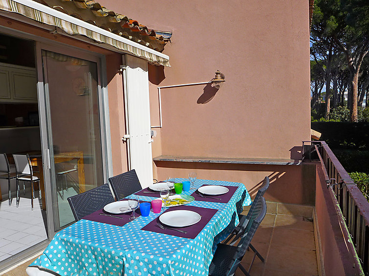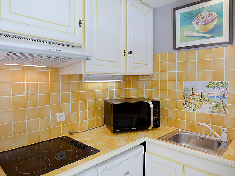 "Le Thalassa 1", apt 2 pièces 40 m2 au 1er étage, situation sud. Aménagement fonctionnel: séjour/salle à manger avec 1 divan-lit double (1 x 140 cm, longueur 190 cm), table pour les repas et TV (écran plat), air-conditionné. Sortie sur la terrasse, orientée sud. 1 chambre avec 1 grand-lit (1 x 140 cm, longueur 190 cm). Cuisine ouverte (lave-vaisselle, 4 plaques vitrocéramique, cafetière électrique, combiné micro-ondes). Douche/WC. Chauffage électrique. Terrasse 12 m2, situation sud. Meubles de terrasse. Vue sur le jardin. A disposition: lave-linge. Place de parking. Maximum 1 animal/ chien autorisé. L'accès au logement se fait par 30 marches.