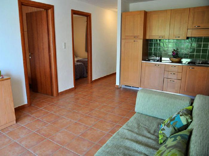 L'appartement comprend une cuisine équipée d'un réfrigérateur / congélateur, de 4 plaques électriques et d'un micro-ondes. L'appartement dispose également dune télévision et d'un coffre-fort.Il comprend une terrasse avec salon de jardin.