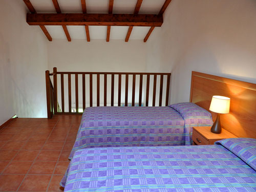Appartement 4 pièces pour 6 à 8 personnes de 70m² environ, composé d'une kitchenette, d'un séjour avec un lit gigogne pour 2 personnes, d'une chambre avec 1 lit double, de 2 chambres en mezzanine avec 2 lits jumeaux chacune, de 2 salles de bains dont une avec WC.