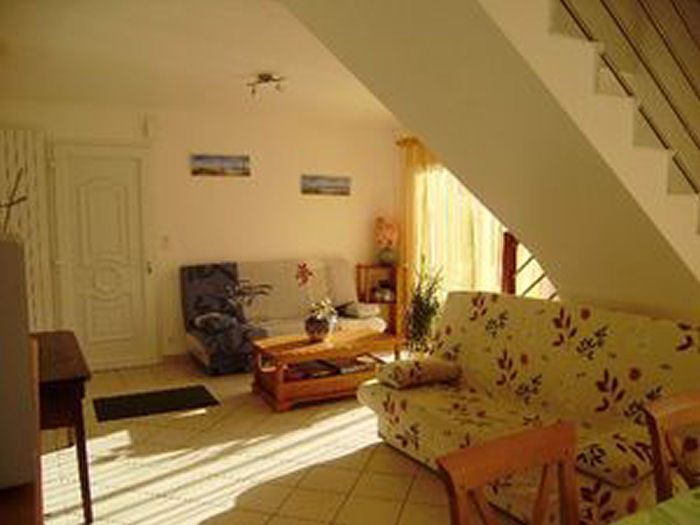 Cette maison pour 8 à 9 personnes, de 100m², se compose au rez-de-chaussée d'une cuisine aménagée ouverte sur séjour/salon équipé de 2 canapés et de 3 grandes baies vitrées donnant sur le jardin, d'une chambre avec baies vitrées, un lit double (160) et une salle de douche attenante avec toilettes séparés. A l'étage se trouve une grande chambre avec un lit double (140) et un matelas d'appoint, 2 chambres avec un lit double chacune (140), une salle de douche et des toilette séparés.La maison dispose également d'un jardin clos de 300m² avec terrasse, salon de jardin et barbecue, ainsi que d'un garage et un stationnement devant la maison.