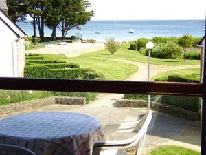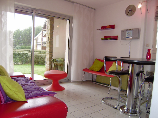 Appartement situé au rez-de-chaussée d une résidence avec un accès direct à la plage de Kerfontaine :- Une entrée- Un séjour avec un canapé-lit type BZ, offrant une vue sur la terrasse.- Une kichenette- Une chambre avec 1 lit double en 140- Une salle de bain avec douche - Wc séparésL extérieur :- Un petit jardin avec une terrasse équipée d un salon de jardin et d un parasol.
