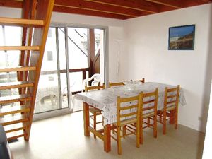 Pour avoir plus de détails et réserver cet hébergement, choisissez une date ci-dessus et cliquez sur voir l'offre ! Vous serez redirigé vers le site proposant la location.Charges courantes Électricité : NonEau : Non Informations complémentaires Situation : à l'étagePas de caution demandéeMaison mitoyenne d'un côté, de 40 m² : Le rez-de-chaussée : - Cuisine toute équipée ouverte sur le séjour avec un canapé-lit - Une salle de bain avec douche - WC indépendants L'étage : - Une chambre (moquette) avec un lit double en 140 x 190 - Une chambre (moquette) avec des lit superposés avec 1 lit tiroir - Un rangement NB : lits équipés de couettes L'extérieur : - Jardin clos avec une terrasse équipée d'un salon de jardin, d'un store manuel, de transats et d'un barbecue. - Un cellier - Une place de parking Année de construction : 1990 A noter : - Electricité en sus sur le relevé du compteur du 1/1 au 31/3 et du 1/11 au 31/12 0.19 ?/ kwh -Linge de lit et de toilette non fourni - Possibilité de location (15 ?/parure de draps; 18 ?/ parure housse de couette ; kit linge : 2 serviettes, 2 draps de bain, 2 torchons, 1 tapis de bain : 18 ?, ou possibilité à l'unité. - Ménage de départ à effectuer par le locataire ou possibilité de réserver un forfait ménage : 85 ? - Le prix de la taxe de séjour variable sera adapté sur place. Nous contacter pour connaître le montant exact. - Caution 450 ?