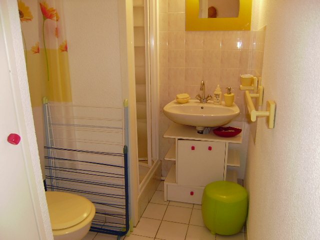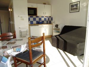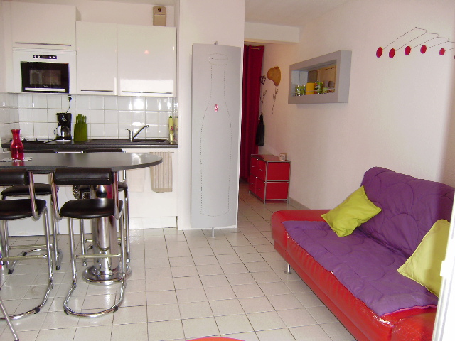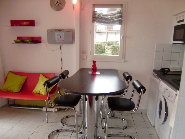 Cet appartement situé au rez-de-chaussée d une résidence se compose d une entrée, d un séjour/ kitchenette avec un canapé-lit type BZ, d une chambre avec 1 lit double en 140, d une salle de bain avec douche et de wc séparés. Terrasse avec petit jardin équipé d un salon de jardin et d un parasol.
