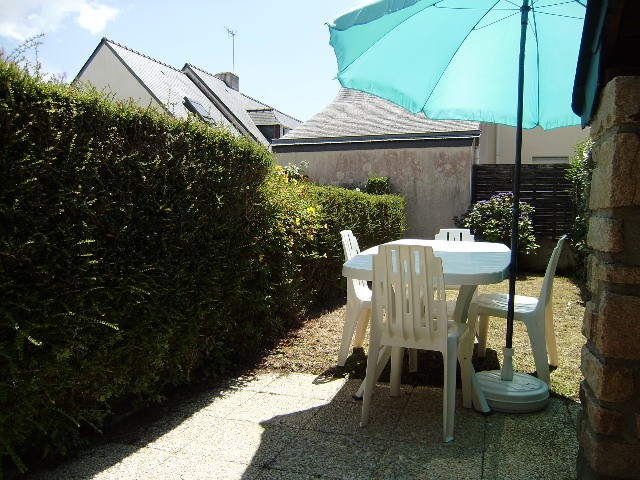 Pour avoir plus de détails et réserver cet hébergement, choisissez une date ci-dessus et cliquez sur voir l'offre ! Vous serez redirigé vers le site proposant la location.Maisonnette mitoyenne située dans une résidence proche de la plage et des commerces à St Jacques en Sarzeau.Le rez-de-chaussée :- Un séjour avec un canapé-lit type clic-clac donnant sur le jardin- Une kitchenette équipée avec lave-vaisselle- Wc L étage :- Une chambre avec un lit double en 140 - Une petite chambre avec deux lits simples en 90- Une salle de bain avec douche / wcL extérieur :- Un petit jardin clos avec une terrasse équipée d un salon de jardin - Une place de parking numérotée A noter : - Linge de lit et de toilette non fourni- Electricité en sus sur le relevé du compteur de novembre à mars.- Le prix de la taxe de séjour variable sera adapté sur place. Nous contacter pour connaître le montant exact.