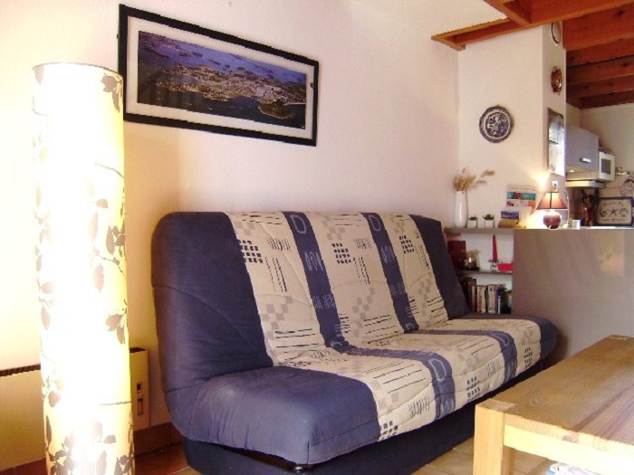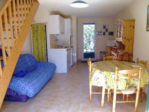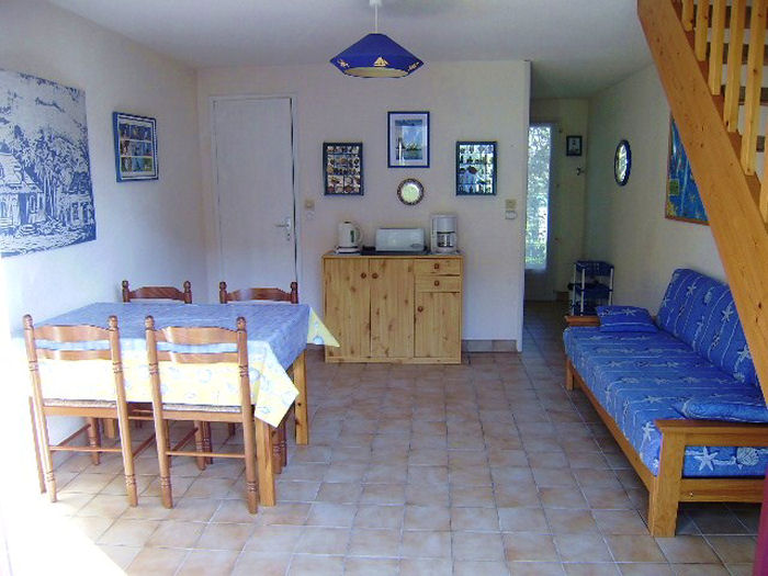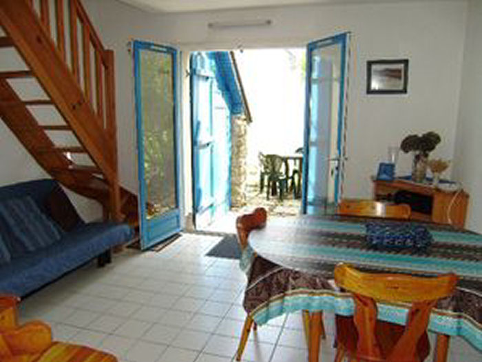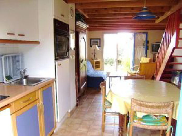 Maisonnette de 35m² pour 3/4 personnes, composée d'un séjour avec un canapé-lit, d'une kitchenette équipée, d'une salle de bain avec baignoire, d'un WC séparé. A l'étage, une chambre avec un lit double et un lit gigogne pour une personne.A l'extérieur, un jardin clos avec cellier et une place de parking numérotée.