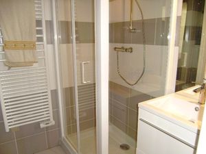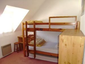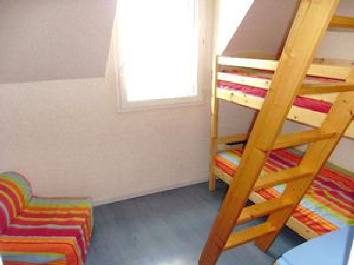 Maisonnette 3 pièces 4/6 personnes, de 40m², composé au rez de chaussée d'un séjour avec canapé, d'une kitchenette équipée, d'une salle de douche et de WC séparés.A l'étage, une chambre avec un lit double, une chambre avec des lits superposés et un clic-clac pour 2 personnes.La maisonnette dispose également d'une petit jardin clos avec terrasse et d'une place de parking numérotée.