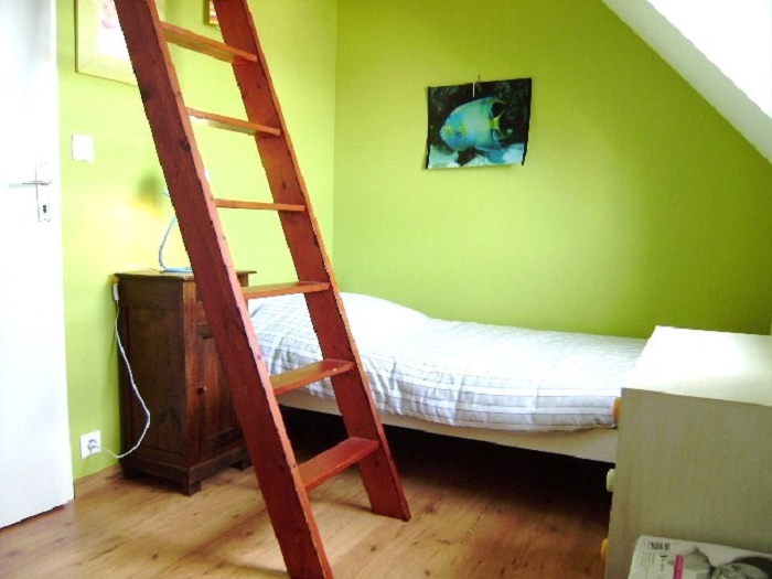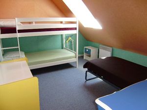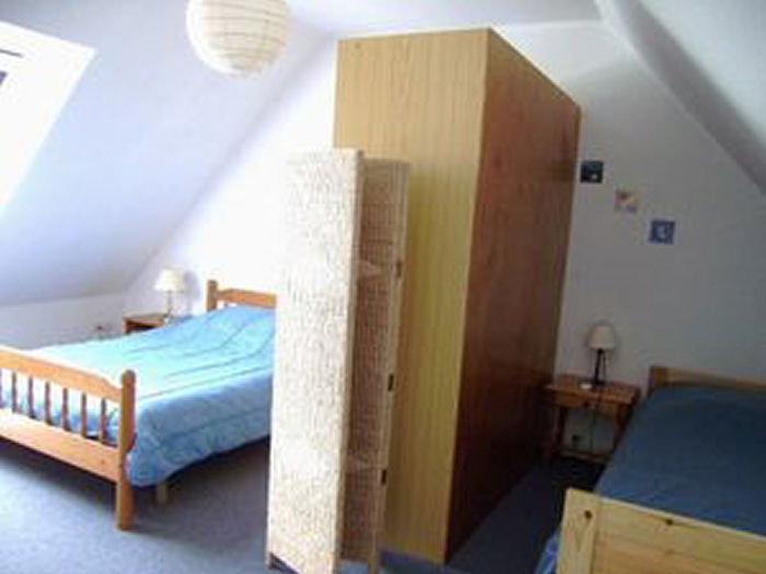 Maisonnette de 3 pièces pour 4 à 6 personnes, de 40m² environ, composée d'un séjour avec un canapé-lit, d'une kitchenette équipée et d'un jardin clos avec terrasse, salon de jardin et un transat. A l'étage se trouvent une chambre avec un lit double (140), une chambre avec des lits superposés ainsi qu'une salle de bains avec baignoire et toilettes.