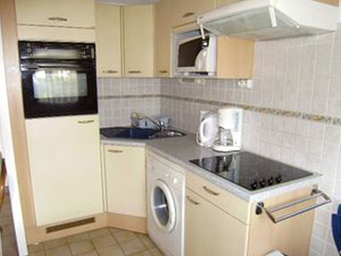 L'appartement dispose d'une kitchenette équipée avec plaques vitrocéramiques, four, lave-vaisselle, réfrigérateur, micro-ondes, lave-linge, cafetière électrique, bouilloire électrique et grille-pain. L'appartement comprend également une télévision, le chauffage électrique, 3 transats et un barbecue.