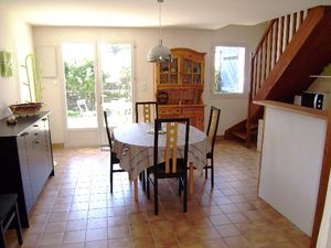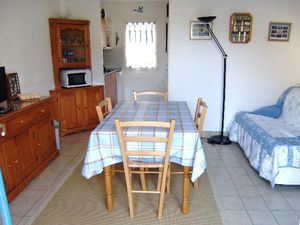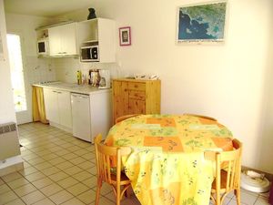Pour avoir plus de détails et réserver cet hébergement, choisissez une date ci-dessus et cliquez sur voir l'offre ! Vous serez redirigé vers le site proposant la location.Cette maisonnette mitoyenne d un côté avec un aménagement simple se compose d un séjour donnant sur le jardin, d une kitchenette équipée, wc et à l étage, d une chambre avec un lit double en 140 et d une petite chambre avec des lits superposés, d une salle de bain avec douche / wc.Vous disposerez d un petit jardin clos avec une terrasse éuipée d un salon de jardin et d un barbecue.Une place de parking numérotée est à votre disposition.