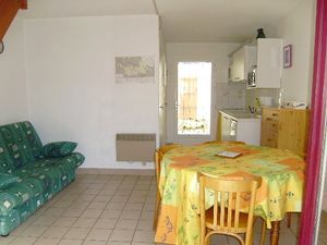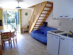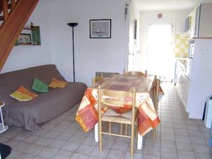 Maisonnette de 44m² pour 5 personnes, composée au rez-de-chaussée d'un séjour avec canapé, d'une kitchenette équipée, d'une chambre avec un lit double, d'une salle de bain avec baignoire, d'un WC séparé. A l'étage, une chambre avec un lit simple et une chambre avec 2 lits simples.A l'extérieur, jardin clos avec terrasse et une place de parking numérotée.