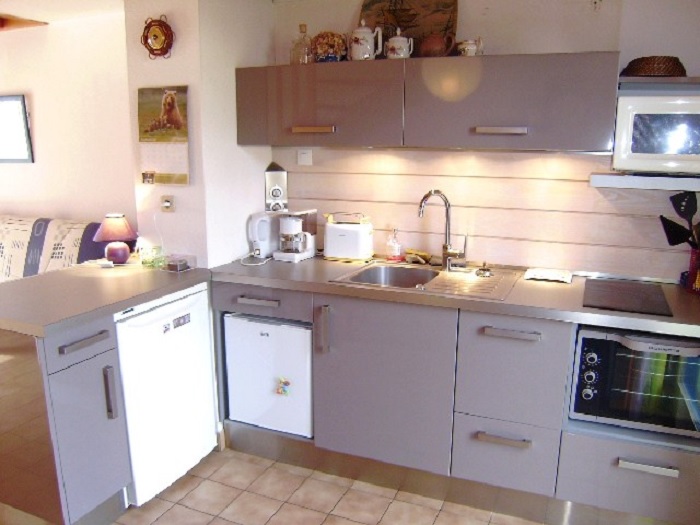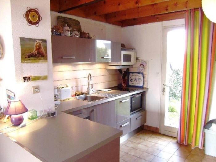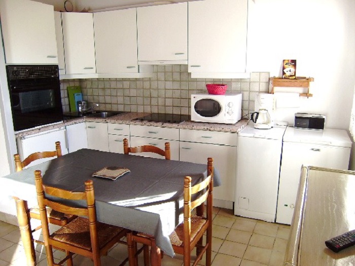 La cuisine est équipée de plaques électriques, réfrigérateur, four électrique, micro-ondes, cafetière électrique, bouilloire électrique, grille-pain et l'ensemble des ustensiles de cuisine. Pour votre confort , la maisonnette est équipée d'un lave linge et d'un chauffage électrique.