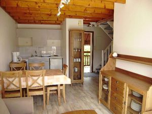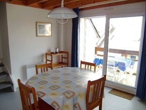 Ce duplex d aménagement simple et confortable se compose d une entrée avec placard, d un séjour donnant sur le balcon, d une kitchenette équipée, d une chambre avec un lit double en140 et placard, wc séparés. A l étage : d une salle de bain avec baignoire, d une chambre avec deux lits 90 + un lit tiroir et une commode. Balcon équipé d un salon de jardin et d un store banne. Une place de parking numérotée est à votre disposition ainsi qu un cellier.