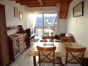 Appartement en duplex 3 pièces pour 4/5 personnes, de 44m², composé d'une séjour avec canapé, une kitchenette, une chambre avec un lit double et des WC. A l'étage, une salle de bains avec baignoire, une chambre avec 2 lits simples et un lit tiroir.L'appartement dispose également d'un balcon et d'une place de parking numérotée.