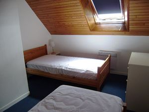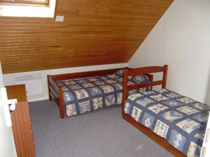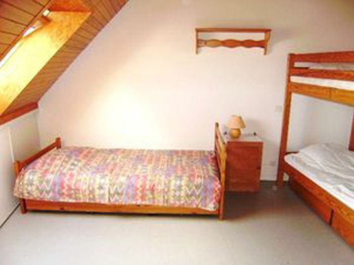 Ce duplex se compose d une entrée avec un placard, d un séjour avec un canapé-lit type BZ donnant sur le balcon, d une kitchenette équipée, d une chambre avec un lit double en 140, une commode et un placard, une petite salle de bain avec douche / wc. A l étage, vous trouverez une chambre avec des lits superposés, un lit simple 90 avec un lit d appoint, des rangements et une salle de bain privative avec une douche. Une place de parking est à votre disposition ainsi qu un cellier.